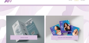 The layout itself is suppoed to be a direct extension of my optimistic design attitude. It uses a deliberate and sophisticated aesthetic, blending soft purple hues (pulled from my custom logo) with ample white space for a clean, professional feel. This visual branding is consistent across the site, from the large "Let's get in touch!" header to the project showcases like "Endo Ease." The structure is simple: I introduce myself, I show the work, and I invite collaboration. It’s built to not just display my projects but to convey the playful, yet strategic, voice I bring to every design challenge.