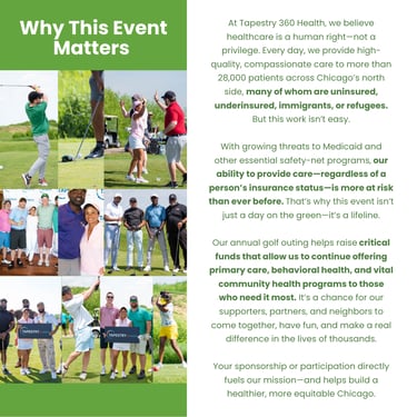 Tapestry 360 Health's mission is to improve the well-being of the communities it serves by offering accessible, high-quality healthcare. The organization envisions becoming a national leader in community-based healthcare by advancing innovative service models and patient-centered best practices .